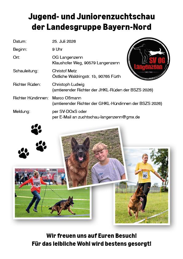 es findet die Jugend – und Juniorenzuchtschau unserer Landesgruppe am 25.07.2026 in der OG Langenzenn statt.